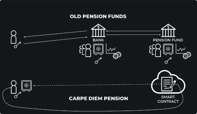 CarpeDiem Pension redefines retirement planning with a unique approach that deviates from traditional pension funds. With no minimum age for retirement, it offers flexibility and freedom, ensuring all genders receive equal treatment. CarpeDiem Pension ensures blockchain transparency, anonymity, and global accessibility, safeguarding pensions during international relocation. Easily transfer pensions to loved ones; share wallet access. Re-deposit payouts for increased future benefits. Importantly, CarpeDiem Pension prioritizes deposit security by avoiding utilizing client funds for internal investments. To become a part of this forward-thinking pension scheme, one simply needs to install and configure a blockchain wallet.